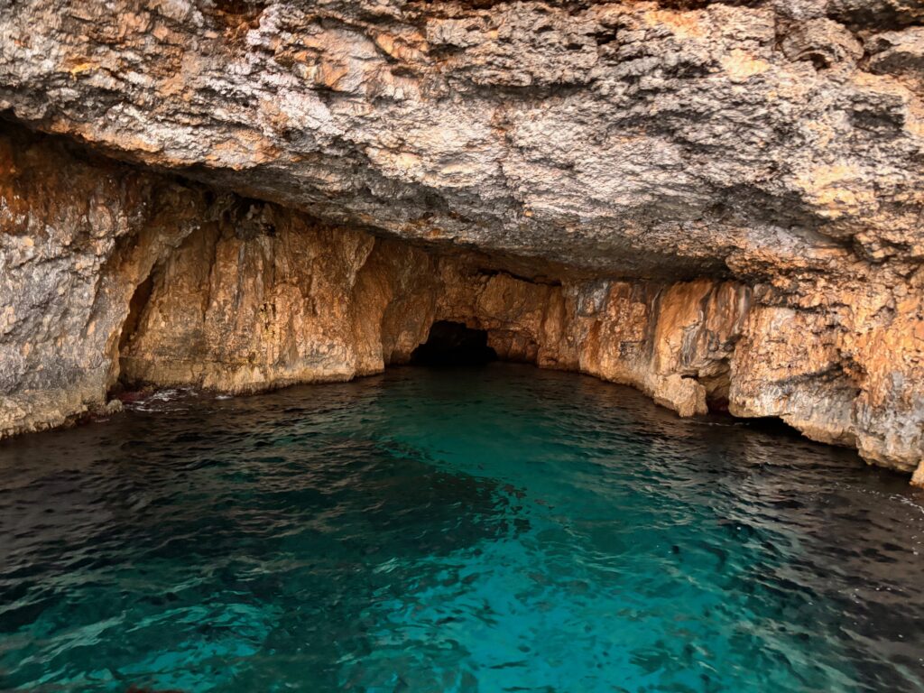 Elle est accessible en bateau sur réservation ou observable depuis la falaise. La vue plongeante sur la mer est magnifique. Un fauconnier attend les visiteurs prêts à débourser quelques euros près du parking pour une démonstration d’envol de son faucon et pour prendre des photos avec ses oiseaux. Le point de vue est extrêmement touristique, mais peu fréquenté en octobre. Si vous optez pour la balade en barque à moteur, vous découvrirez sept cavernes successives. De quoi faire rêver vos pirates en herbes. Prévoyez réserver avant votre départ, car il y a beaucoup moins de dates disponibles à l’automne et en hiver.