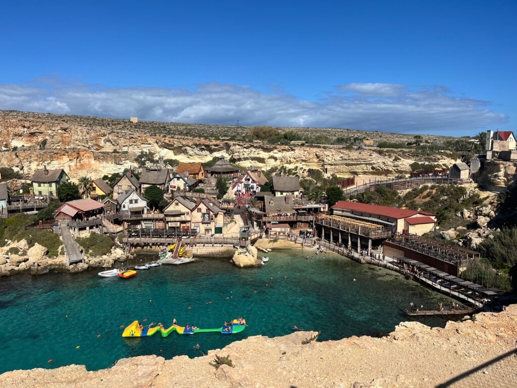 Ce village, situé dans Anchor Bay, a été créé de toutes pièces pour le tournage du film du même nom par Disney en 1980. C’est aujourd’hui un parc d’attractions composé de maisonnettes aux airs de BD. Le billet d’entrée du site est assez cher (15 € par personne). La vue sur le village et surtout sur la crique depuis la falaise est à couper le souffle. Et gratuite ! Vous ne pourrez cependant pas profiter de la baignade dans les eaux turquoise de la baie, car réservée aux visiteurs du parc.